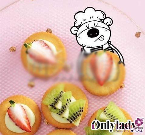 作法:1.将婴儿奶粉盛入碗中,添加优酪乳,充足搅拌均匀,直到粘稠。2.将优酪乳酱,擦抹在曲奇饼干上。新鲜水果切成片,粘于曲奇饼干上就可以。