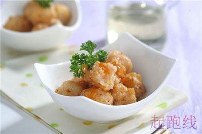 原材料:鲜虾30克,鸡蛋清一个,圆葱20克,海鲜酱油适当