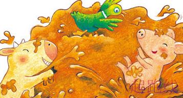 一天,泥土仔猪想出去交友。他先去公鸡家,他看到公鸡已经歌唱,歌唱美好无比!泥土仔猪自信满满地走以往,说:“公鸡,公鸡,想和你在一起交友!”但是,公鸡却仰起头,摸了摸胸口说:“像我这样价格昂贵的雄鸡才配不上做一只泥土仔猪的盆友呢!”因此,仔猪灰心丧气地走了。但是,仔猪还不愿舍弃。他又来到小兔子家、大山羊家、小鸭家。她们都不愿意和他交友。仔猪坐着草地嚎啕大哭,他的泪水滴嗒、滴嗒地往下流,潮湿了农田,绿草爬出来了。仔猪让绿草给他们发表意见,绿草说:“嗯……,估计你应当去冼澡。”