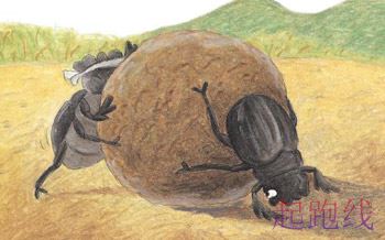 屎壳郎立在排便生日蛋糕的一边,用前边的二只手推式起來;另一只屎壳郎立在排便生日蛋糕的另一边,用二只后面推起来了。“一二,一二,用劲推啊!”