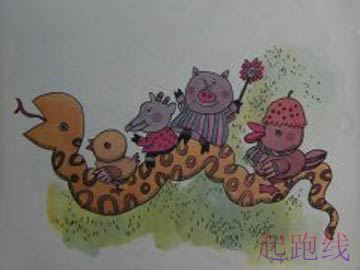 乐儿越久越大,越来越又粗又长,也更爱玩了。有一次,它让小鸡小鸭,也有小猫咪小白兔骑在自身的身上,带著他们去外边玩。它游过田坎,爬上了道路。大家都吓傻了:啊,一条大花蛇!