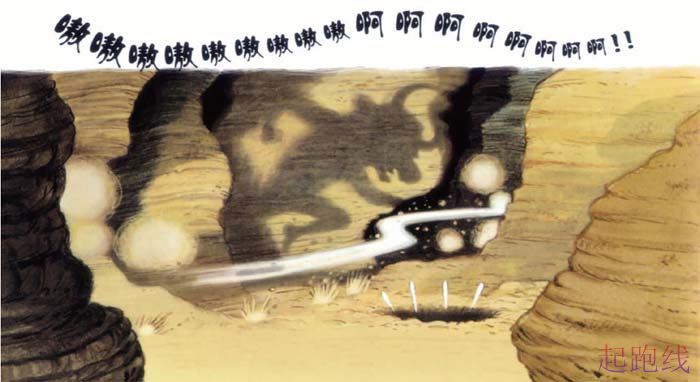 “绷紧绳索!”伦尼、血盆大口、小糊涂和小磨磨蹭蹭使尽了全力以赴把佐拉从深洞里拉了出去。