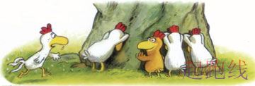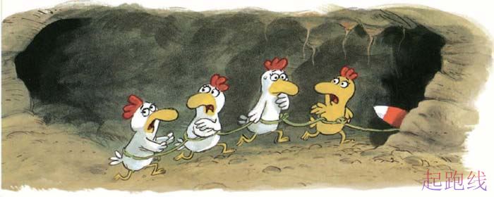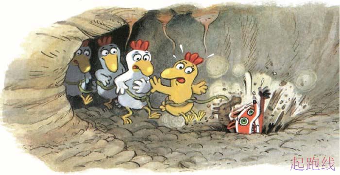 “快逃跑呀!”小老母鸡们边喊边以最短的时间向鸡棚逃去。