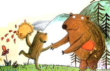 笨笨熊一声也不吭,由于他想妈妈了。“笨笨熊,”青蛙问,“你的花朵干什么?”“我……”笨笨熊说,“我给宝妈们寄信。”“寄信?”青蛙说,“好点子,我帮你送信!”