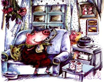 ??? 猪妈妈又把2个仔猪放进炉子前,雪猪的脸部流下来了许多水。猪妈妈说:“哟,这一仔猪全身湿透!我吹风机把他吹吹干。”