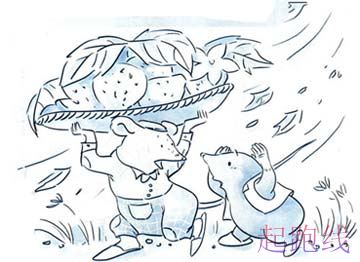 “呦,天呐!”小鼹鼠叫了起來,“天要下雨了!如果没斗笠护着脑壳,准会发烧感冒的。”因此,小鼹鼠伸出腿,沿着风,去追逐自身的斗笠。