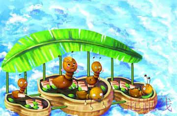 “姥姥,您并不是常说要不畏艰难吗?”一只小甲虫摇着老太太大肚小蚂蚁的手说。 “行吧,那大家自身想办法!想到方法了,先给姥姥看一下,务必保证安全、万无一失。” “好呢!”小甲虫高兴得跳了起來。她们头撞头唧唧喳喳地商议了起來。 一会儿,四只小蚂蚁抗来二根树技,三只小蚂蚁抬来一片芭蕉叶,也有几个小蚂蚁拖来一块吐司面包。 “大家真聪慧,树技芭蕉叶能够 做船,吐司面包做大家旅程的干食,但是万一风吹浪打,大家如何保护自己呢?不好,不好,再想办法去。”大肚老太太将头摇得象手摇铃,把近视眼镜都摇没了。 小甲虫好心寒啊,可是她们沒有灰心丧气。她们坐着河边,左思右想。一条鱼儿伸出脑壳吐个泡儿,看到几个眉头紧锁的小甲虫,就游过来问她们为何那么郁郁寡欢? 小甲虫把她们的准备和碰到的艰难告知了鱼儿,小鱼的眼睛骨碌碌地旋转了起來。 “嗨!有方法了。”鱼儿指向小蚂蚁背后的花生仁地说,挖几个花生仁,用花生壳做几个乌篷船,不就解决困难了没有? “咦!对啊!” 小甲虫一边挖花生仁一边等农夫来临。挖了二天两夜挖了三颗花生仁。又花了二天两夜,才把花生仁剥出去。又花了二天两夜制成了一艘三只花生壳,一片芭蕉叶,两根树枝搞成的航母,但是农夫还没有来,小甲虫就给农夫写了一张留言条: “农夫,抱歉,大家渡河去对门山顶旅游,挖了您三颗花生仁做乌篷船,等大家旅游回家,给您带些山果实回家。” 小甲虫携带长辈父母为她们提前准备的干食,总算踏入了她们的渡河探险之旅。