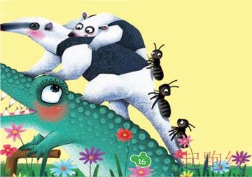 在大伙儿勤奋“疊十八罗汉”的情况下,小甲虫们则排着队一刻不停地为这一愈来愈高的“十八罗汉”顶部爬去。当食蚁兽爬到鄂鱼身上时,看见一朵云,这朵云仿佛了解小动物们的来意,自始至终悬浮在他们的头上,替他们抵御炎日。
