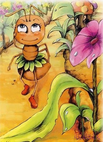蚂蚁公主迫不及待地对小蚂蚁婢女说:“快给我洒点香水吧!”