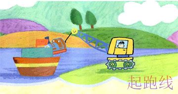 第一次乘船,老老火车有点儿焦虑不安,他想:我一辈子都没有离开过铁路线,真有点儿不习惯呢。