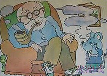 老大爷有一个深爱的烟斗,他老是用它吸烟。老大爷“吱—吱—“地吸,再”呼—“地吐出,房屋里全是浓烟。住在老大爷俩里家中的小耗子,也被呛出了泪水。?