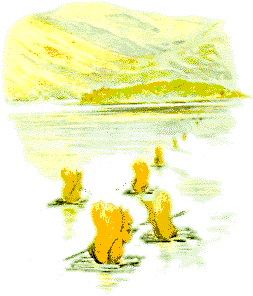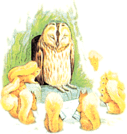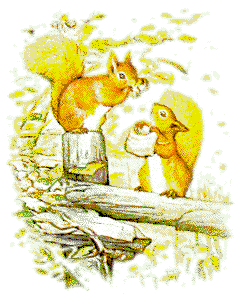 每一只松鼠都是有一个小兜和一把划艇用的桨,她们的小尾巴高高的吹拂,如同船里的风帆一样。 她们更为老布郎带来到三只肥胖症的小耗子,做为赠给他的礼品,放到他的大门口阶梯上。